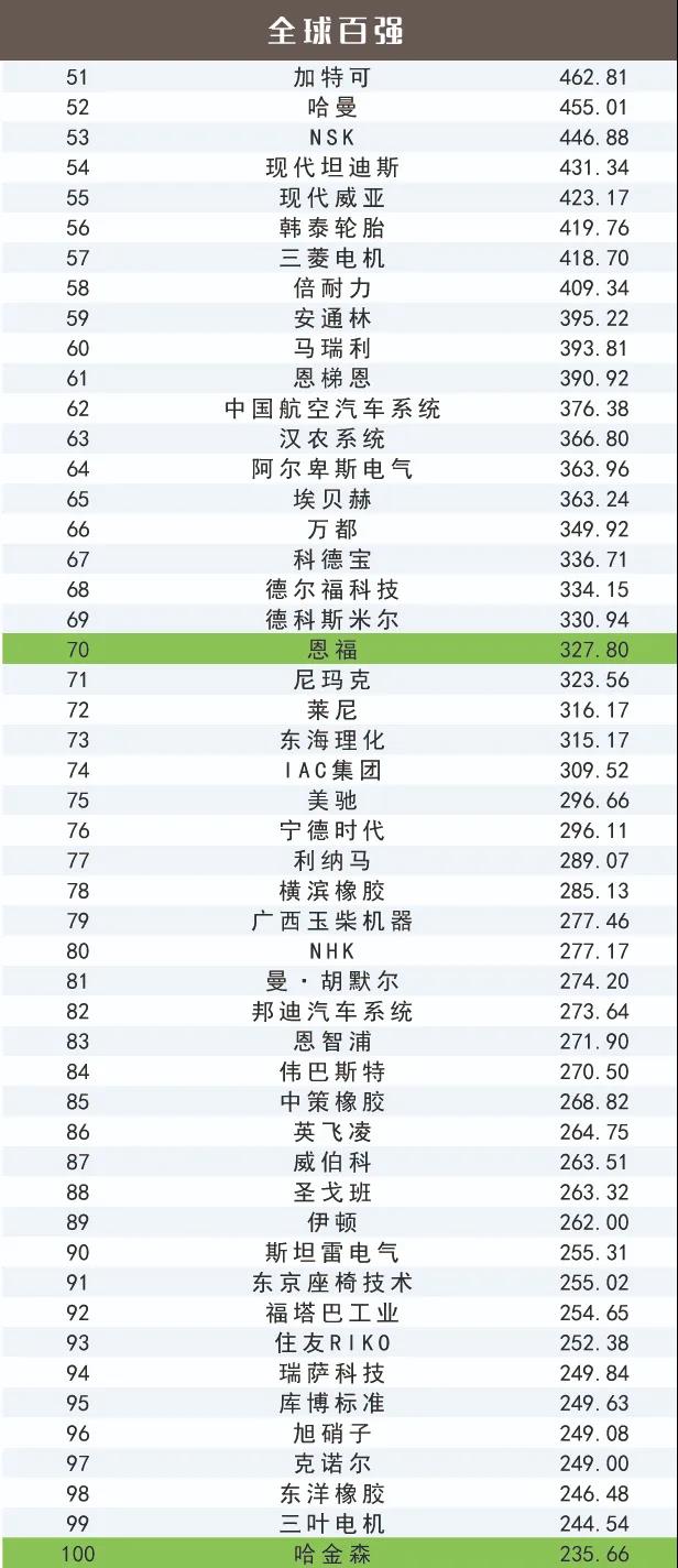 “全球百強”的2018年零部件總營收約7.37萬億元,“中國百強”的2018年零部件營收額總計約1.18萬億元,前者是后者的5.25倍。“全球百強”35位的營收是“中國百強”35位的7.7倍!我們的成長空間還很大!