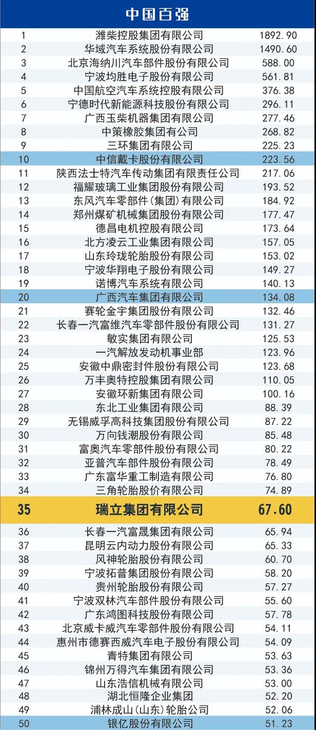 “雙百強”即“2019中國汽車零部件企業百強榜”和“2019全球汽車零部件企業百強榜”,榜單根據2018年零部件企業的營業收入排序。