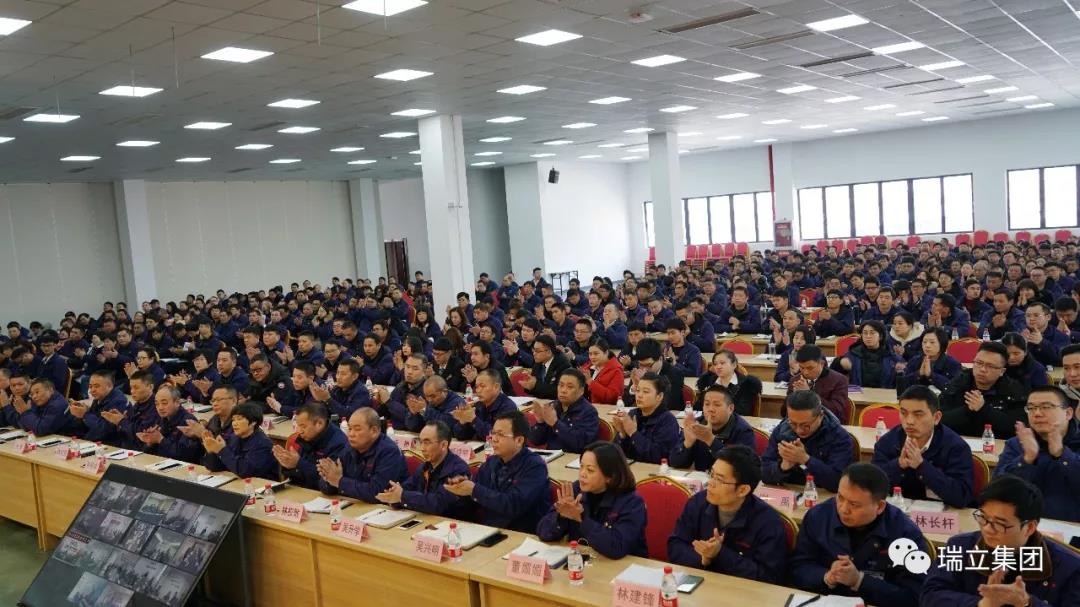 一元復始,萬象更新。為對2019年度的工作及時進行總結,新年伊始馬上部署2020年度的生產經營工作,2020年1月1日上午,瑞立集團召開了2020年度經營工作大會。集團總部部長助理級及以上干部,下屬各子公司、板塊管理團隊,駐外銷售等各部門各級干部共2000余人參會(瑞安總部1000余人現場參會,全國各地1000余名干部視頻連線參會)。會議由集團執行總經理余錦瑞主持。