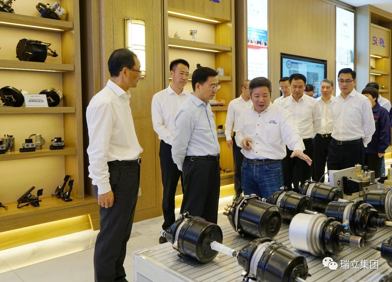 在展示廳,張曉平董事長(zhǎng)詳細(xì)介紹了瑞立集團(tuán)“從單個(gè)產(chǎn)品到商用車底盤制動(dòng)系統(tǒng)、乘用車制動(dòng)系統(tǒng)、軌道風(fēng)源系統(tǒng)”的全產(chǎn)業(yè)鏈發(fā)展情況。他說,瑞立從溫州瑞安起步,立足主業(yè),堅(jiān)守實(shí)業(yè),不斷走向全國、全球。瑞立要做頭部企業(yè),不僅要高起點(diǎn)引進(jìn)世界一流設(shè)備、一流人才,更要搭建產(chǎn)業(yè)平臺(tái),用未來的眼光、全局的眼光、全球的眼光,保證瑞立“百億”目標(biāo)的實(shí)現(xiàn)。