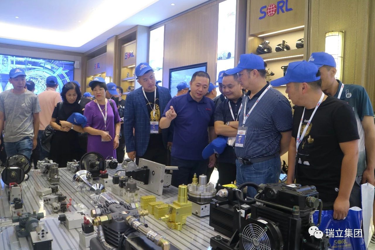 離合器壓盤、調整臂、剎車片、盤式制動器、舉升缸、舉升泵、增壓器、空氣流量計、ECAS、ABS……當戰略合作客戶代表步入展廳,他們的目光迅速被展柜上的各種各樣產品吸引。整車模擬臺架上藍色油漆的瑞立產品,直觀地展示了瑞立產品覆蓋從氣源供氣到車子制動停下來的全過程。無論是新能源汽車零部件、電子電控汽車零部件還是轉型升級的閥類產品,都成了大家關注的焦點。